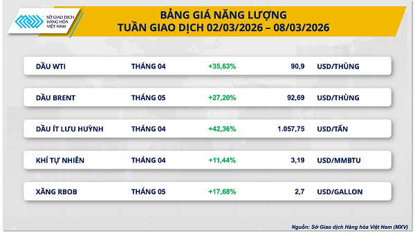 Thị trường năng lượng toàn cầu đã trải qua một tuần biến động mạnh khi rủi ro địa chính trị tại Trung Đông tiếp tục leo thang. Kết thúc phiên giao dịch ngày 6/3, giá dầu WTI tăng vọt lên 90,9 USD/thùng, tương đương tăng 35,6% so với cuối tuần trước đó và chạm mức cao nhất kể từ tháng 9/2023. Trong khi đó, giá dầu Brent cũng tăng 27,2%, lên gần 92,7 USD/thùng - mức cao nhất kể từ tháng 4/2024.