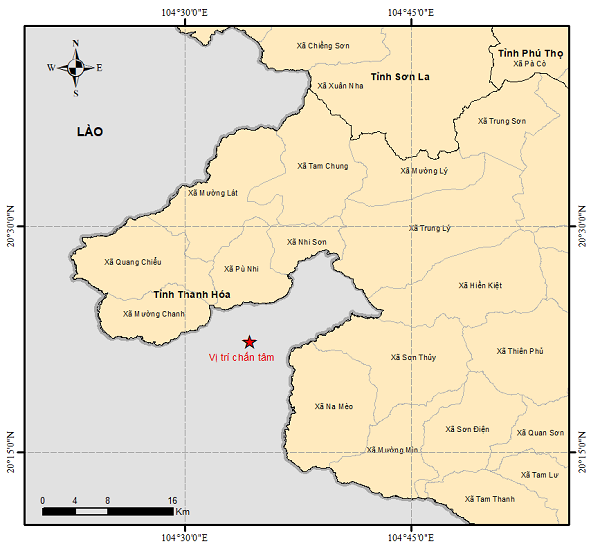 Động đất 4,8 độ xảy ra tại tỉnh Houaphan, Lào cách biên giới Việt Nam tại địa phận xã Na Mèo, tỉnh Thanh Hóa khoảng 5km.