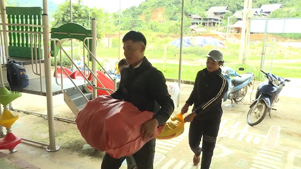 Lương thực theo chân phụ huynh đến điểm trường vùng cao