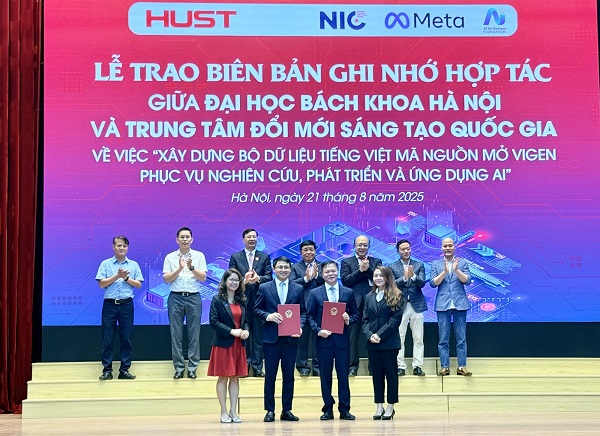 Cũng tại chương trình, Đại học Bách Khoa Hà Nội và Trung tâm Đổi mới sáng tạo Quốc gia đã trao biên bản ghi nhớ hợp tác về việc "Xây dựng bộ dữ liệu tiếng Việt mã nguồn mở VIGEN phục vụ nghiên cứu, phát triển và ứng dụng AI".