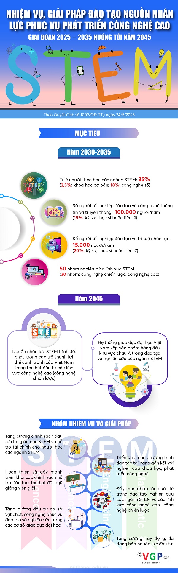 Chính phủ ban hành Quyết định số 1002/QĐ-TTg ngày 24/5/2025 phê duyệt Đề án đào tạo nguồn nhân lực phục vụ phát triển công nghệ cao giai đoạn 2025 - 2035 và định hướng tới năm 2045.