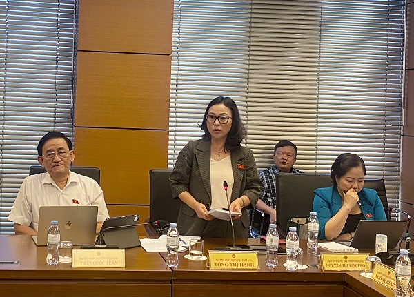 Đại biểu Tống Thị Hạnh (Vĩnh Long) nêu ý kiện tại Phiên thảo luận - Ảnh: VGP/Kim Liên