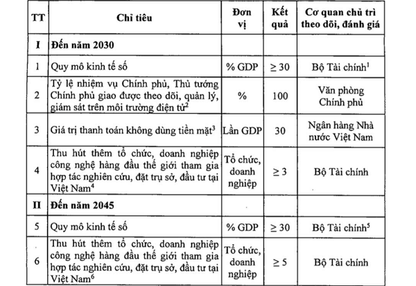 Tháng 6/2026, hình thành một số Trung tâm dữ liệu đạt tiêu chuẩn quốc tế, tiêu chuẩn xanh (Bộ Khoa học và Công nghệ chủ trì, phối hợp các bộ, ngành liên quan).