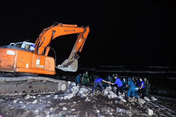 Trong đó, lực lượng xử lý sự cố sạt lở đê biển Hải Thịnh 3 gồm 1.300 người, trong đó có 200 đồng chí Công an, 572 đồng chí thuộc lực lượng Quân đội và khoảng 500 lực lượng tại chỗ.