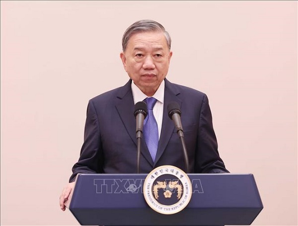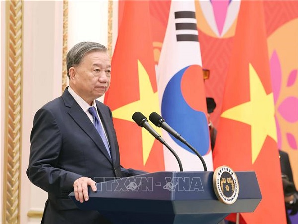 Tổng Bí thư Tô Lâm: Việt Nam luôn coi trọng quan hệ hợp tác với Hàn Quốc và mong muốn Hàn Quốc đồng hành cùng Việt Nam trong kỷ nguyên vươn mình của dân tộc Việt Nam - Ảnh: TTXVN