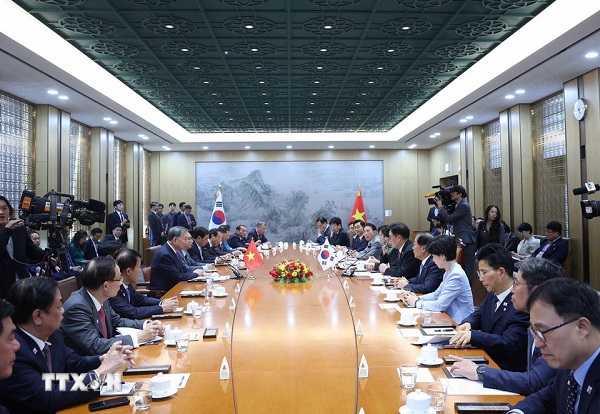 Tổng Bí thư Tô Lâm đề nghị hai bên hợp tác chặt chẽ triển khai hiệu quả các cơ chế hợp tác song phương và đa phương như tiếp tục mở cửa hơn nữa cho hàng hóa xuất khẩu thế mạnh của Việt Nam vào thị trường Hàn Quốc, qua đó sớm hoàn thành mục tiêu nâng kim ngạch thương mại song phương lên 150 tỷ USD vào năm 2030; đẩy mạnh, hợp tác lao động, đào tạo nguồn nhân lực chất lượng cao; quan tâm, tạo điều kiện thuận lợi cho cộng đồng người Việt Nam hòa nhập, sinh sống, học tập và làm việc tại Hàn Quốc; đặc biệt tạo điều kiện cho kiều dân Việt Nam trở thành Nghị sĩ Quốc hội Hàn Quốc trong thời gian tới.