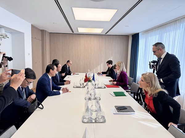 Về quan hệ Việt Nam-EU, hai bên bày tỏ hài lòng về những bước phát triển mạnh mẽ, toàn diện, thực chất sau 35 năm thiết lập quan hệ ngoại giao (1990-2025). Phó Thủ tướng cho rằng quan hệ song phương đang bước vào một giai đoạn mới, hướng tới nâng cấp quan hệ lên Đối tác Chiến lược toàn diện, do đó cần tăng cường hợp tác mọi mặt, thúc đẩy các chuyến thăm cấp cao nhằm làm sâu sắc hơn hợp tác về chính trị - ngoại giao, thương mại – đầu tư, an ninh – quốc phòng cũng như đẩy mạnh những lĩnh vực mới như khoa học – công nghệ, đổi mới sáng tạo, kinh tế xanh, ứng phó với biến đổi khí hậu…