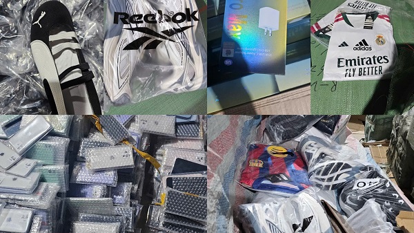 Ngoài ra, lực lượng chức năng còn phát hiện số lượng lớn hàng hóa thời trang gồm 5.100 sản phẩm quần áo, 2.320 đôi giày dép, 464 túi xách và 34 đồng hồ đeo tay. Các sản phẩm này có dấu hiệu giả mạo các nhãn hiệu như Louis Vuitton, Dior, Hermes, Nike, Adidas, Cartier.
