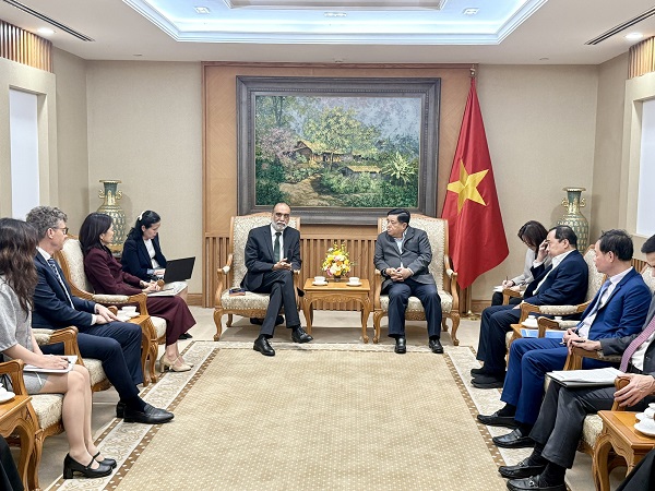 Phó Thủ tướng Chính phủ Nguyễn Chí Dũng tiếp ông Amandeep Singh Gill, Phó Tổng Thư ký Liên Hợp Quốc kiêm Đặc phái viên của Tổng Thư ký Liên Hợp Quốc về Công nghệ - Ảnh: VGP/Thu Sa
