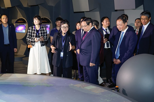 Trước khi tham dự Diễn đàn, Thủ tướng Phạm Minh Chính và các đại biểu đã tham quan Trung tâm Điều khiển - Vận hành Vệ tinh tại Trung tâm Vũ trụ Việt Nam. Đây là nơi theo dõi trạng thái vệ tinh trên quỹ đạo, lập kế hoạch điều khiển, thu nhận dữ liệu và xử lý để tạo sản phẩm phục vụ các bộ, ngành, địa phương, đồng thời phục vụ các yêu cầu về an ninh, quốc phòng.