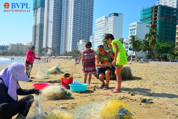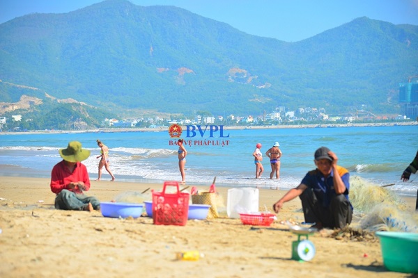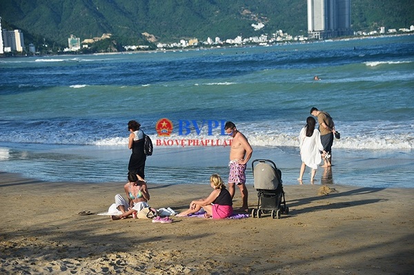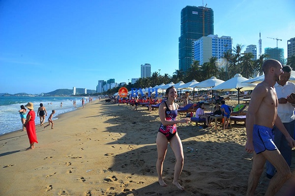 Người nước ngoài trên bãi biển Nha Trang (Khánh Hòa) thanh bình. Ảnh: NH.